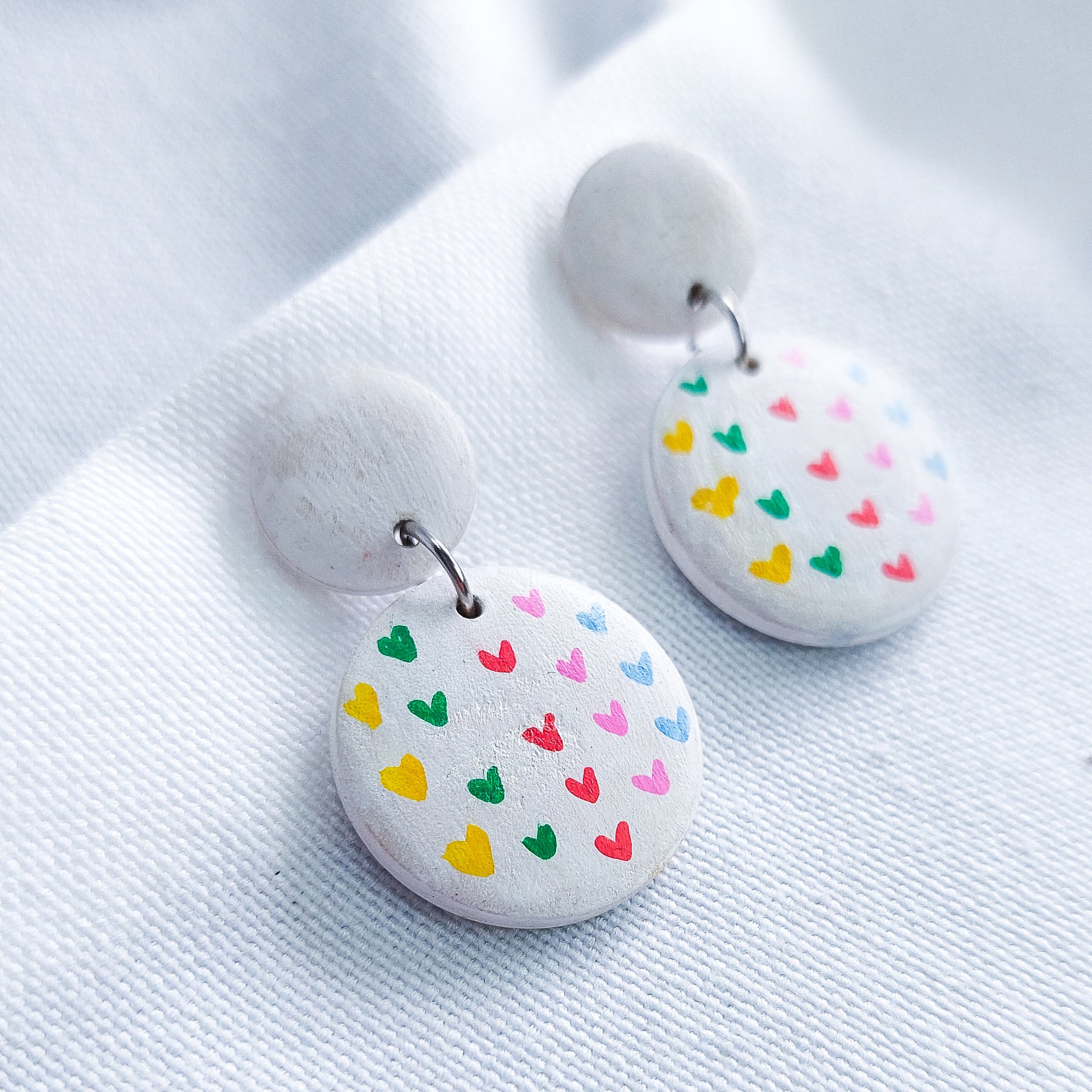 Adicione um toque de charme e alegria ao seu visual com estes exclusivos brincos de pequenos corações coloridos!