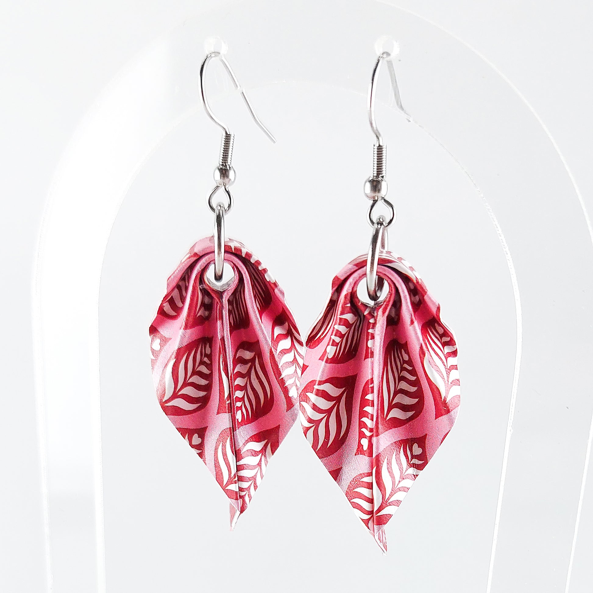 Estes brincos em origami apresentam um design exclusivo em formato de folha, meticulosamente dobrados à mão em papel envernizado e resistente. Cada peça adiciona um toque natural e diferenciado ao seu visual.